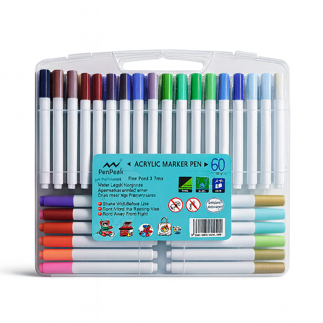 Набір акрилових маркерів 60 штук на водній основі в кейсі Pen Peak вологостійкі для скетчингу, скрапбукінгу, малювання