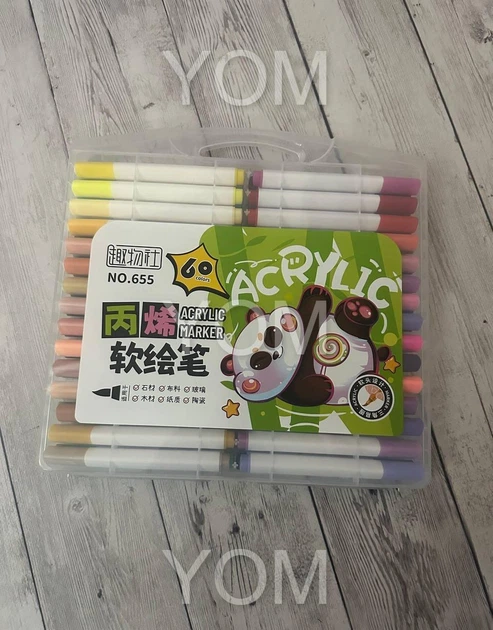 Набір акрилових маркерів фломастерів для творчості та малювання 60 кольорів Water Acrylic Marker