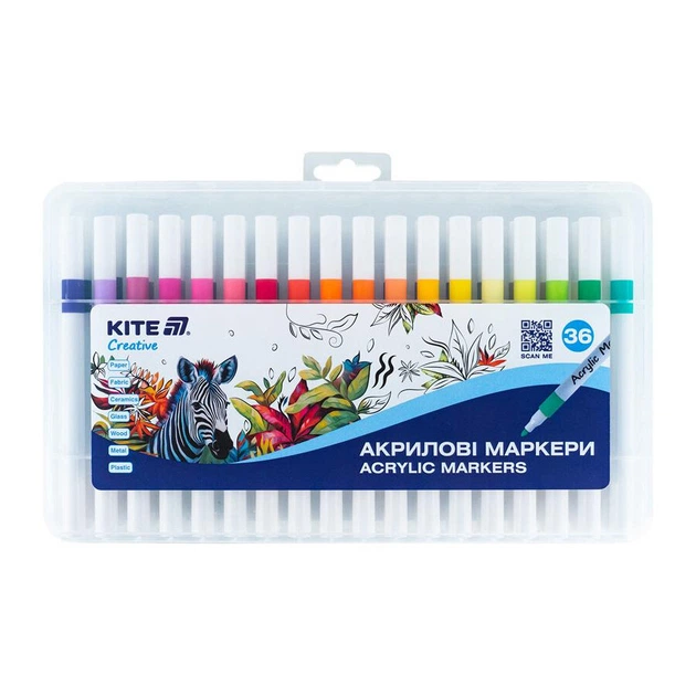 Набір акрилових маркерів Kite Creative 1-3 мм 36 кольорів в пластиковому пеналі (K-1158)