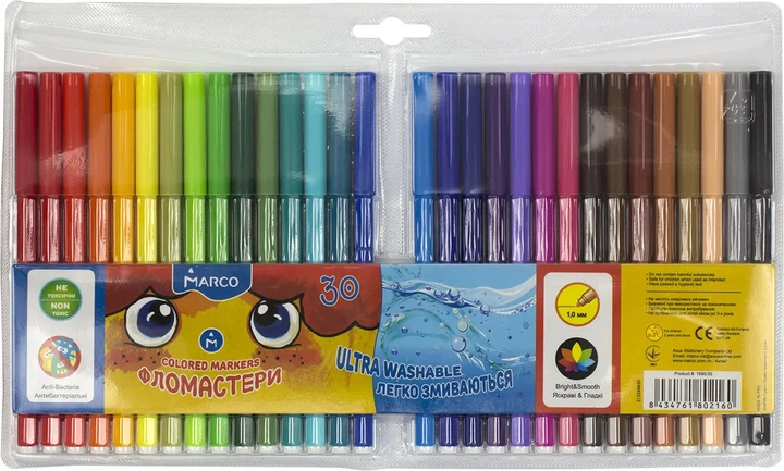 Фломастери Marco Super Washable 30 кольорів на водній основі 1690-30