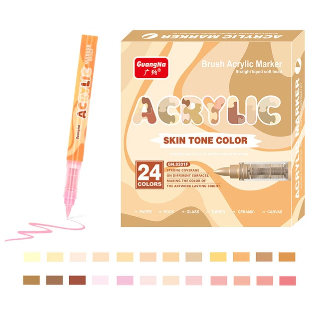 Маркери акрилові Skin Tones 24 кольори Guangna набір для малювання пензлик