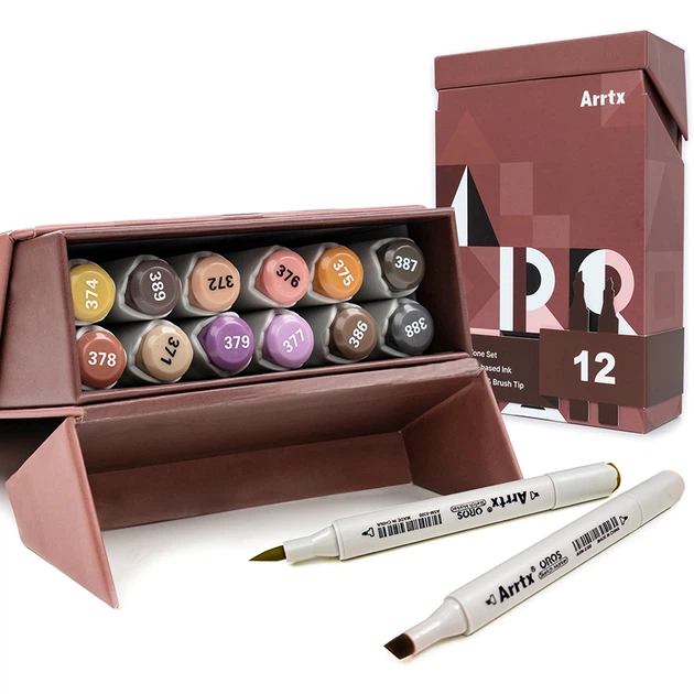 Спиртові маркери Arrtx Oros ASM-03-SK02 12 кольорів, відтінки шкіри