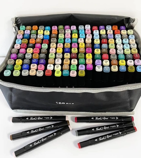 Набір двосторонніх маркерів для скетчингу та малювання на спиртовій основі Touch Qiuci 168 шт