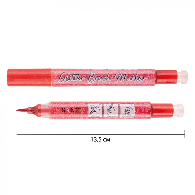 Маркер двосторонній акварельний Santi Glitter Brush 390750 романтичний червоний 4985213