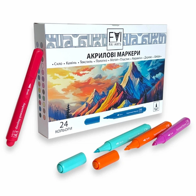 Акрилові маркери-пензлі FaiArts 24 кол - універсальні, для різних поверхонь, водостійкі