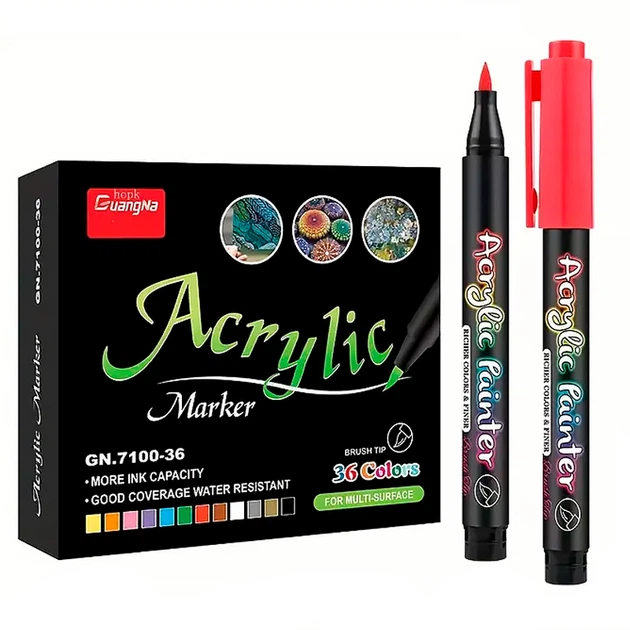 Набір акрилових маркерів для малювання Guangna GN7100 універсальні для малювання по склу тканині дереву металу кераміці 36 к