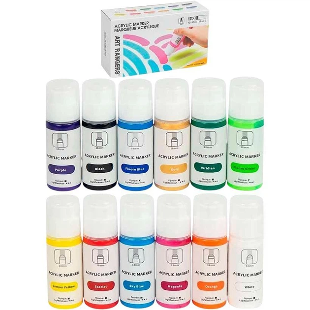 Акрилові маркери Набір 12 кольорів круглий наконечник 18 мм, 60 мл