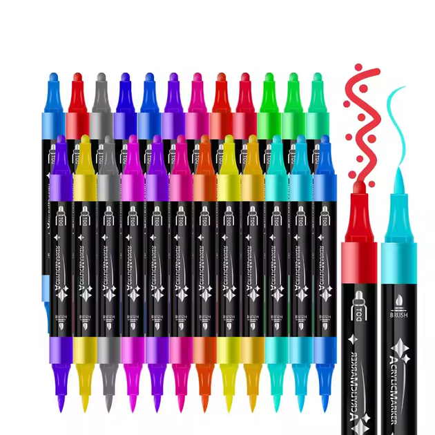 Набір двосторонніх акрилових маркерів на водній основі, 24шт (48 кольорів), маркер для паперу, дерева, скла