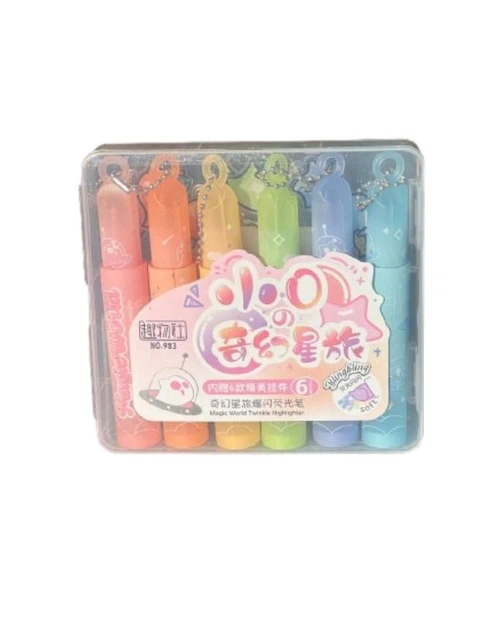 Художні акварельні акрилові маркери дитячі односторонні для скетчингу фломастери на водній основі з блискітками 6 кольорів д