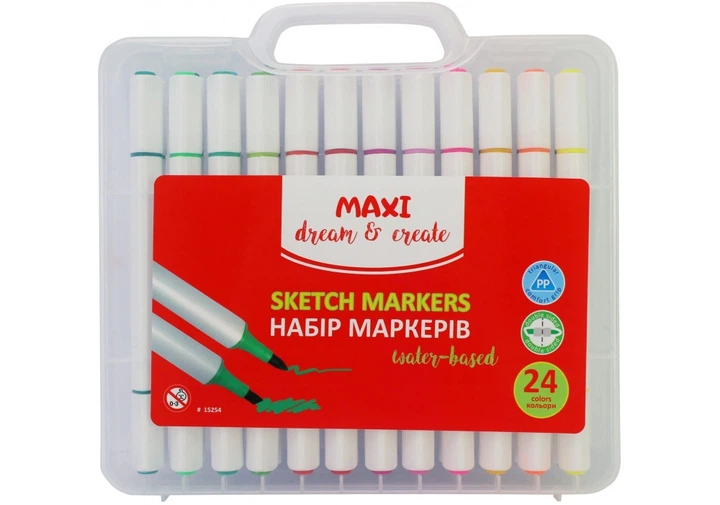 Набір скетч-маркерів двосторонніх MAXI, 24 кольори, на водній основі, MX15254