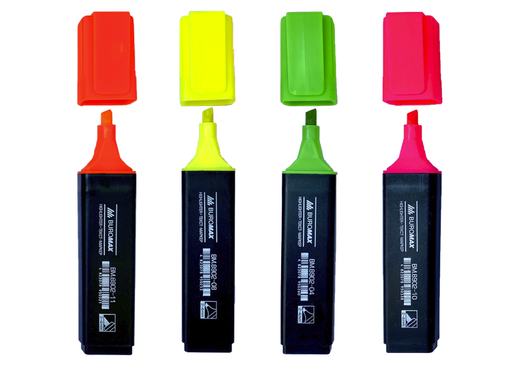 Набір із 4х текст-маркерів (жовт., зел., рож., помаранч.), JOBMAX, 1-5 мм, водна основа