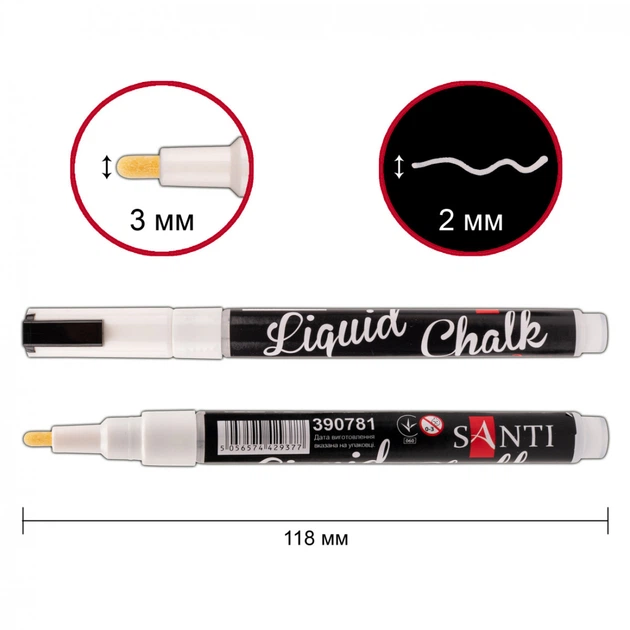 Крейдяний маркер Santi 5 мм 6 шт білий (390782)