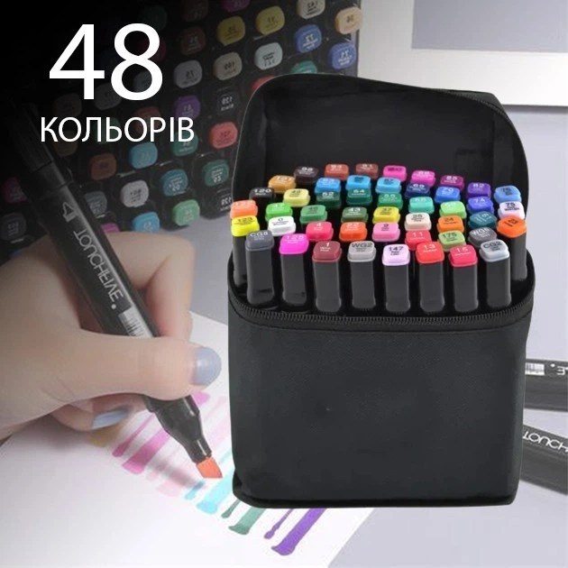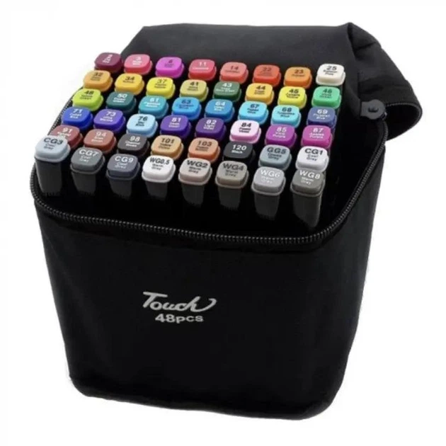 Набір професійних маркерів для скетчингу та малювання Touch 48 шт./уп. у чохлі, двосторонні професійні фломастери для художн