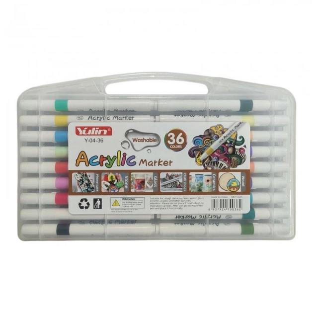 Набір акрилових маркерів 36 штук на водній основі у кейсі Acrylic Marker Y 04