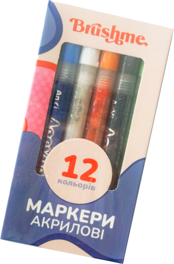 Набір акрилових маркерів Brushme на водній основі 12 шт (MACR12)