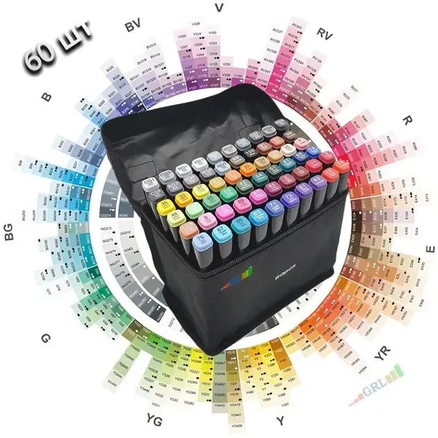 Набір скетч маркерів 60 шт Маркери двосторонні для скетчигу та малювання на водній основі
