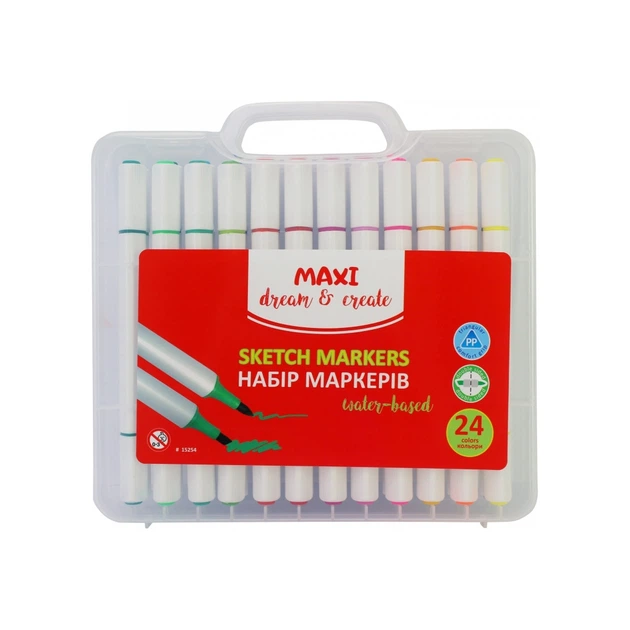 Художній маркер Maxi набір скетч-маркерів двосторонніх, 24 кольори на водній основі (MX15254)