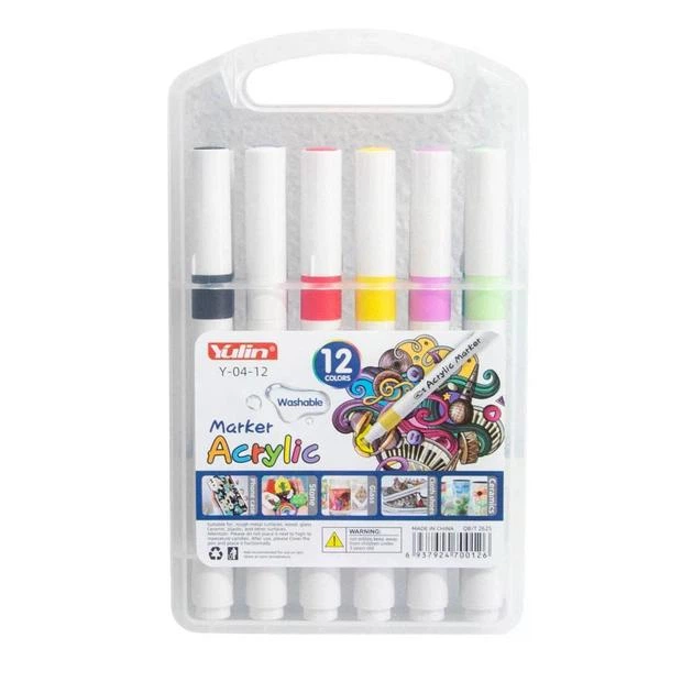 Набір акрилових маркерів 12 шт/уп, Marker Acrylic, акрилові фломастери в кейсі, Yulin Y-04-12