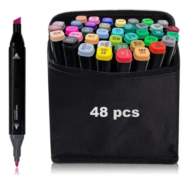 Маркери для скетчингу набір скетч маркери фломастери за номерами для скетчбука в сумці-чохлі 48 кольорів спиртові двосторонн