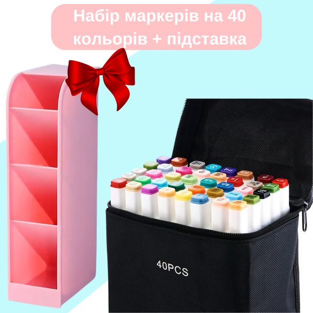 Набір спиртових маркерів двосторонніх Touch Smooth для малювання 40 штук + Підставка рожева