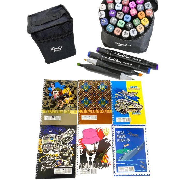 Набір маркерів Touch двосторонніх скетч маркерів 36 шт в чохлі + блокнот А5 (40 арк) в асортименті для хлопчиків (XK-MRK-BOY