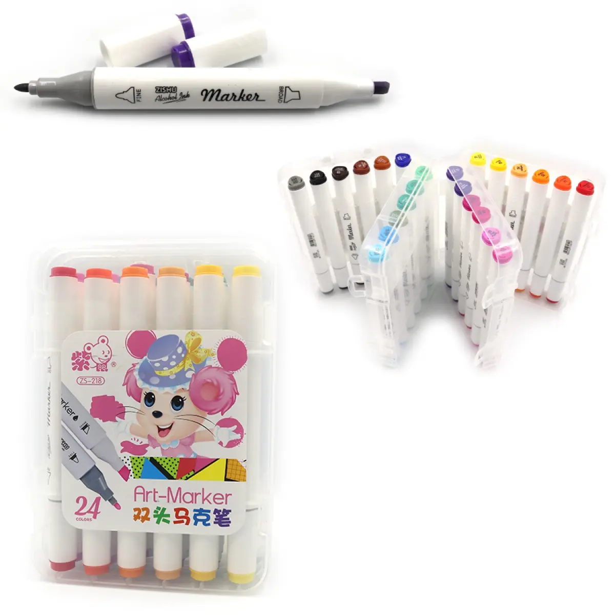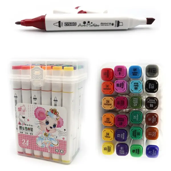 Набір скетчмаркерів Mouse, 24 шт., 24 кольори, круглий/скошений наконечник, пластиковий бокс