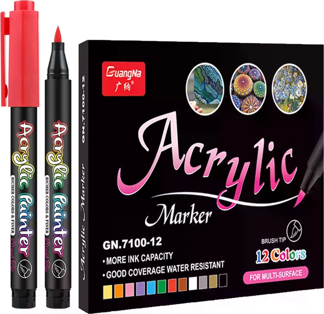 Набір акрилових маркерів 12 кольорів універсальні guangna gn 7101 на водній основі фломастери для малювання на папері склі д