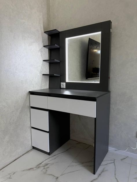 Туалетний столик із дзеркалом, підсвіткою і тумбою в сірому кольорі антрацит MS615