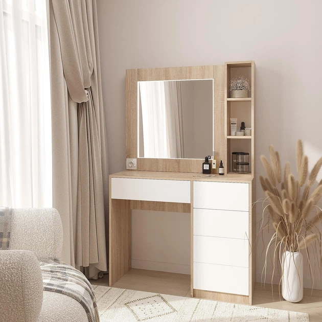 Туалетний столик з LED підсвіткою ТЗ-LED 1600х1000х380 мм Дуб Сонома/Білий
