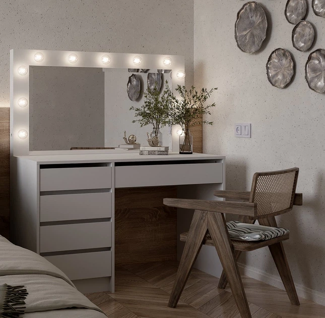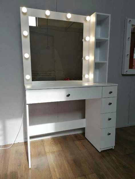 Стіл візажиста для макіяжу 5S МДФ БРВ із дзеркалом та підсвічуванням Білий/білий глянець