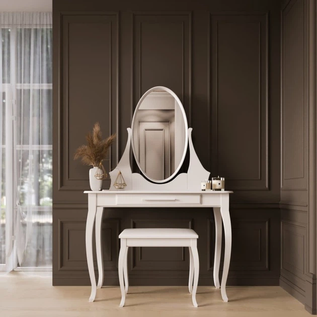 Туалетний столик із дзеркалом та пуфом Fenster Болонія 2 Білий