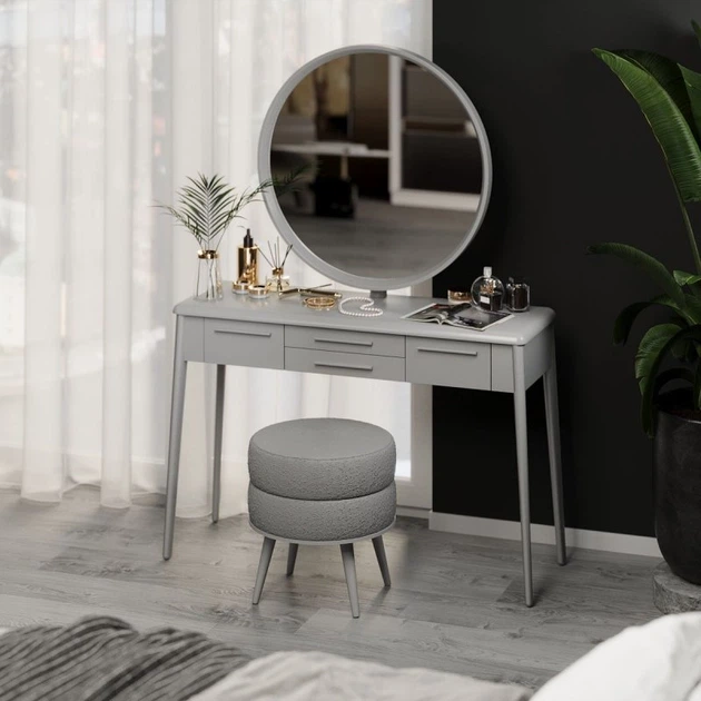 Трюмо с тумбой и пуфом Fenster Амур Светло-серый/Аликанте