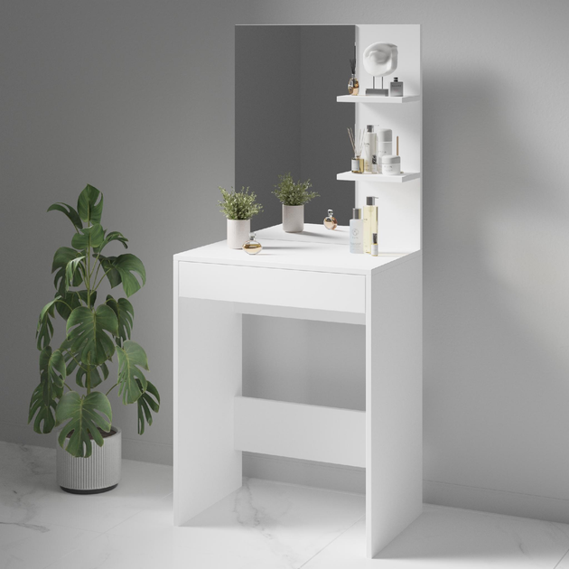 Туалетний стіл для макіяжу з висувною шухлядою, столик із дзеркалом та поличками з ДСП S-14V