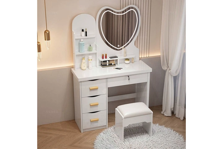 Стіл макіяжний з LED дзеркалом та пуфом STL-MD 85 білий серце
