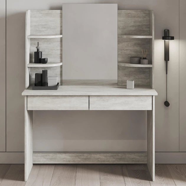 Туалетний столик 1070х400х1410 мм з висувними шухлядами та полицями, Бетон