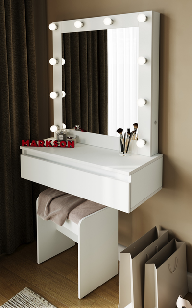 Туалетний столик з дзеркалом та видвижною тумбою MS611 "Сучасний стиль" білий