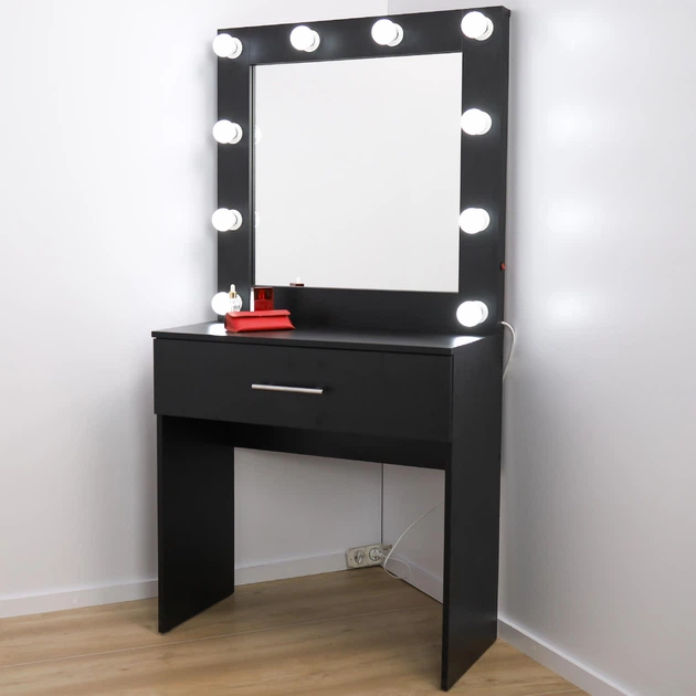 Гримерний столик з дзеркалом з шухлядою, ширина 80см висота 160см MiroRika чорний