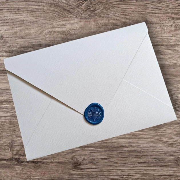 Конверт С5 24х17 см білий перламутр з сургучною печаткою "Merry cristmas"