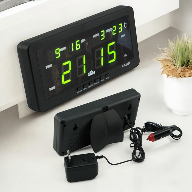 Настільний цифровий годинник CX-2158 Green з будильником від мережі батарей прикурювача (3635)