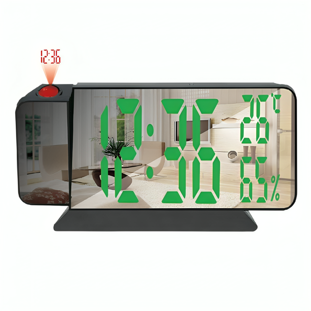 Цифровий електронний настільний годинник з проекцією датчиком температури вологості 8,9х18,5х2,3 см (479392-Prob) Зелений LE