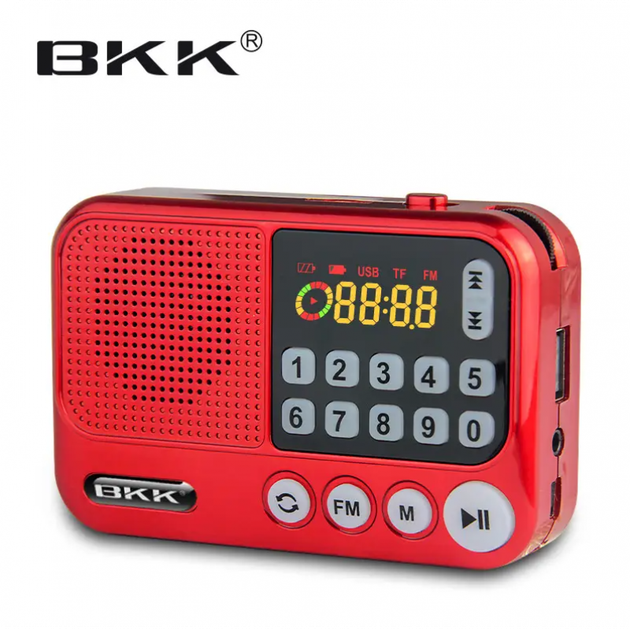 Радіоприймач цифровий акумуляторний BKK S99 Червоний кишенькова колонка радіо та mp3 плеєр з LED дисплеєм AM/FM/SW USB Micro