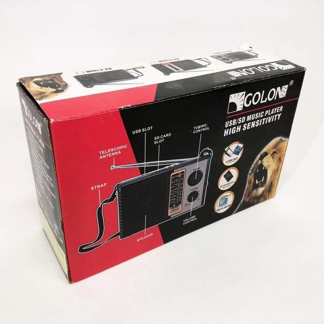 Радіоприймач переносний GOLON RX F12 AM/FM/SW, Радіоприймач am fm, Радіо переносне фм. Колір: чорний