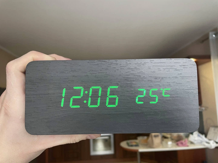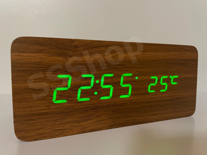 Світлодіодні настільний годинник VST з бездротовою зарядкою і температурою (під дерево) Коричнево-Зелені