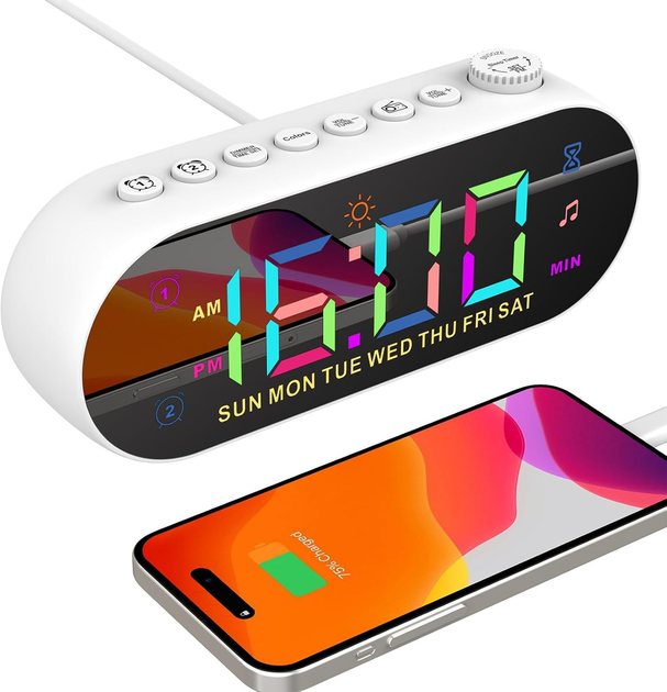 Будильник з FM-радіо, 8 будильників для спальні, 5 рівнів яскравості екрану, цифровий годинник, приліжкові будильники з підс