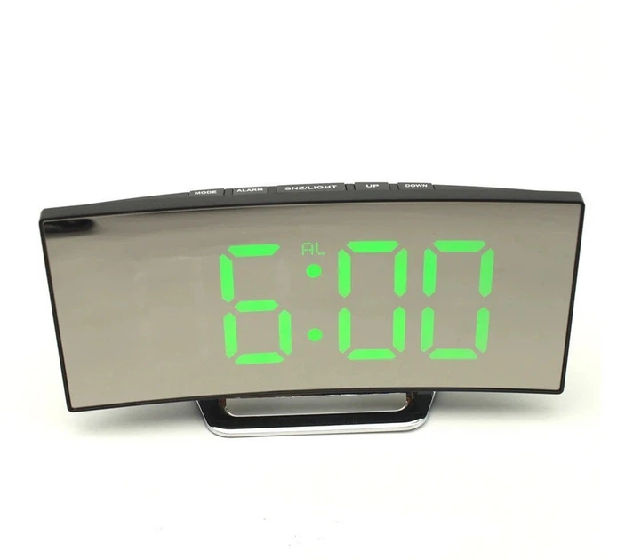 Дзеркальний настільний годинник DT6507 з вигнутим дисплеєм та зеленим підсвічуванням