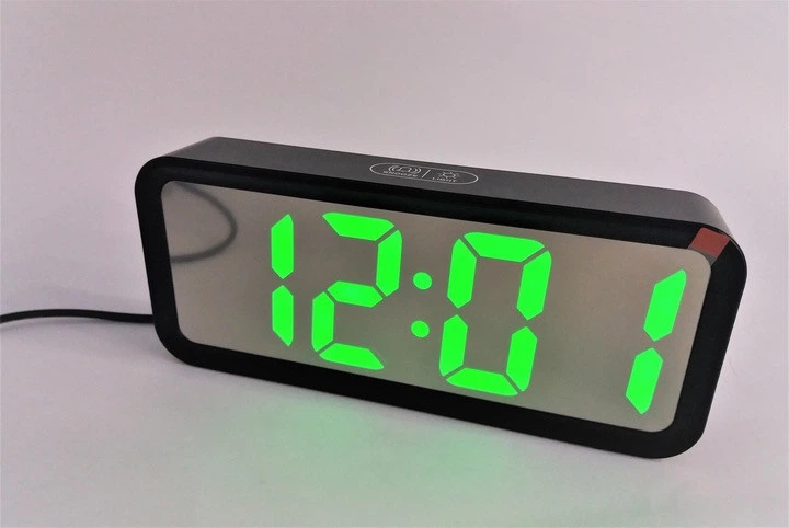 Дзеркальний електронний годинник VST, настільний, з зеленим циферблатом, з живленням від USB кабелю, Чорний (4888)