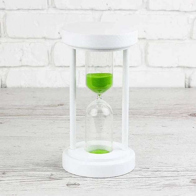 Годинник пісочний 4-34 на 50 хвилин (білий колір / салатовий пісок) (СП 300700)