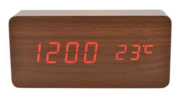 Настільні годинники Wooden Watch електронні світлодіодні з будильником USB 15см Коричнево-помаранчеві (VST-862-1)