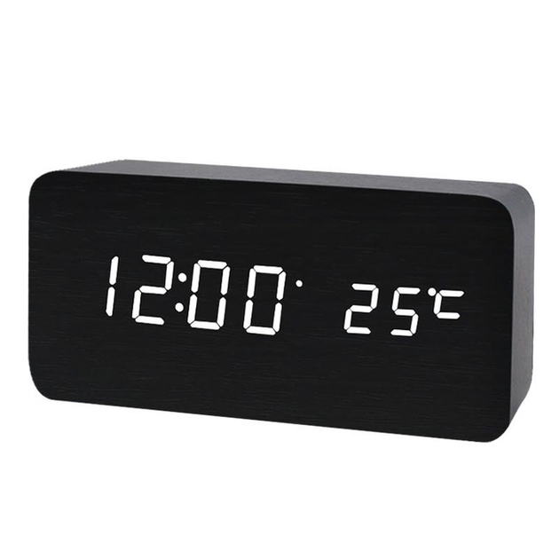 Настільні годинники Wooden Watch електронні світлодіодні з будильником USB 15см Чорно-білі (VST-862-2)
