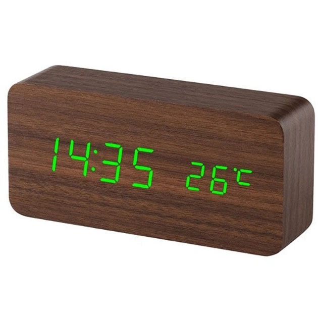 Електронний Годинник З Датчиком Температури Будильник Живлення Від Usb Коричнево Зелений (300471)